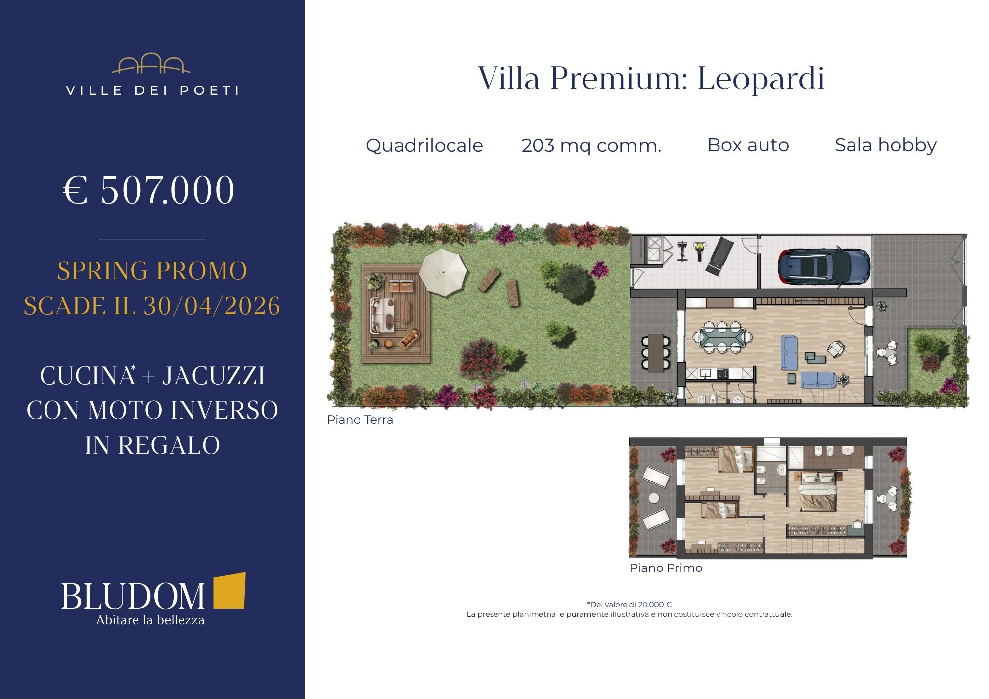 La primavera porta con sé nuove energie e nuovi inizi. È il momento ideale per aprire un nuovo capitolo, scegliere la casa in cui mettere radici e costruire un fiorente futuro. Cogli l’eccezionale opportunità di acquistare un’esclusiva villa nel Borgo dei Poeti e fai crescere qui il tuo progetto di vita.