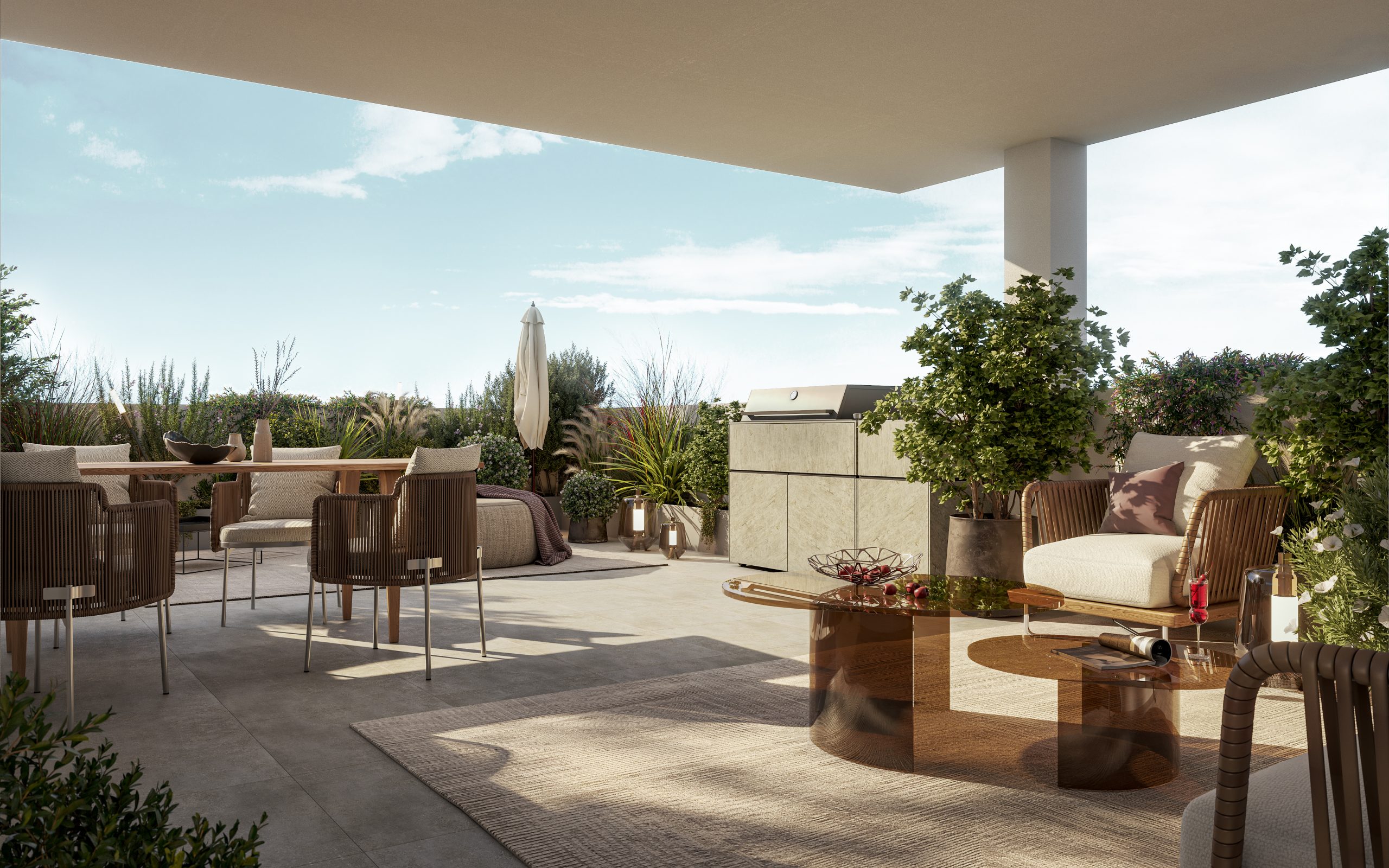Il complesso offre diverse tipologie abitative, dagli eleganti bilocali fino ai quadrilocali di dimensioni generose, con spazi ben distribuiti per ottimizzare le attività quotidiane. Tutte le unità presentano, inoltre, un grande spazio esterno: le residenze con giardino al piano terra sono vere e proprie oasi private; mentre, quelle ai piani superiori sono dotate di ampi terrazzi da cui godere della vista sulla città.